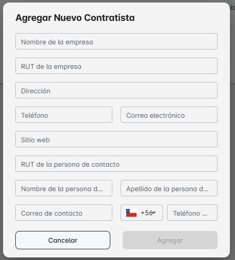 | RUT duplicado | Verifica que el contratista no haya sido registrado previamente. |
