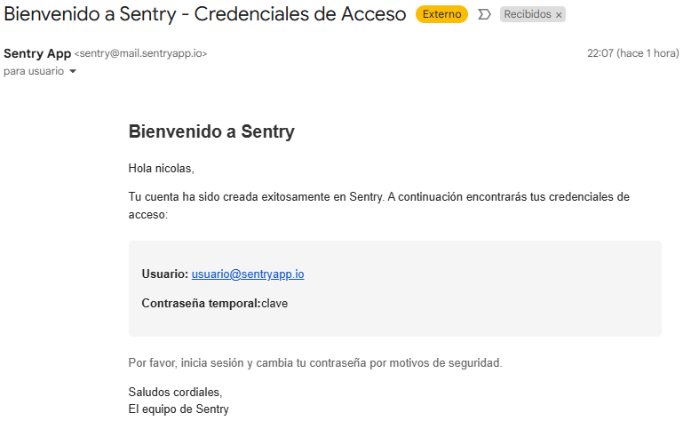 5. El sistema enviará automáticamente las credenciales de acceso al correo electrónico ingresado.